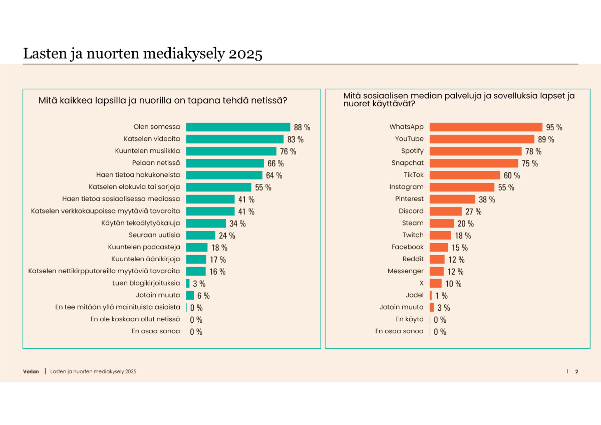 Kansallisen audiovisuaalisen instituutin (KAVI) ja tutkimusyhtiö Verianin Lasten ja nuorten mediakysely 2025 maalaa yksityiskohtaisen kuvan kuudesluokkalaisten mediankäytöstä Suomessa. Kyselyyn vastasi 311 manner-Suomen 12–13-vuotiasta huhti–toukokuussa 2025.