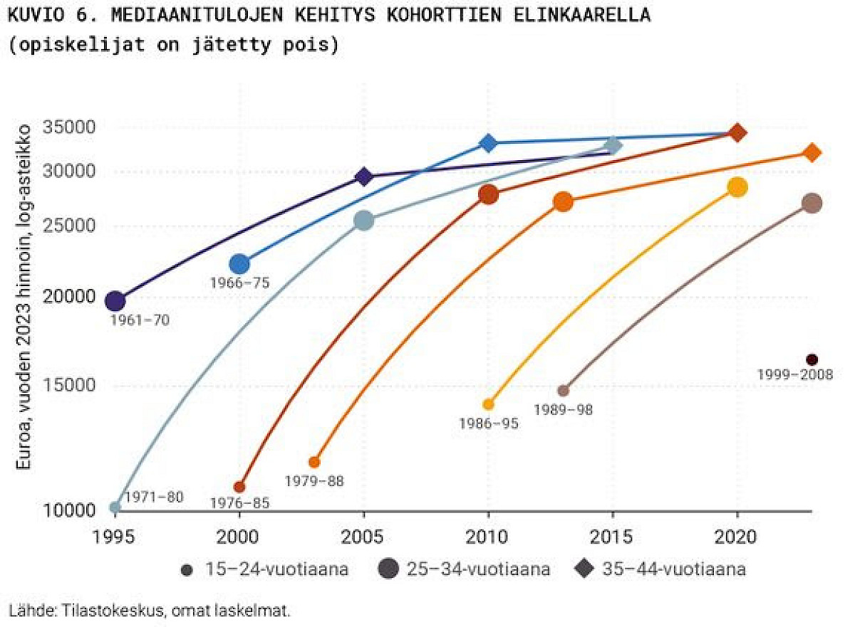 Laboren rekisteriaineistoihin perustuva analyysi osoittaa, että nykyinen nuori sukupolvi ei näytä jäävän pysyvästi jälkeen vanhemmista sukupolvista elinkaaren tulokehityksessä. Sen sijaan varallisuuden kehitys on epävarmempi, ja selkein pitkän aikavälin huolenaihe liittyy koulutustason laskuun viimeisimmissä kohorteissa. Koulutusvalinnoilla ja -resursseilla on ratkaiseva merkitys tulevien vuosikymmenten kehitykselle.