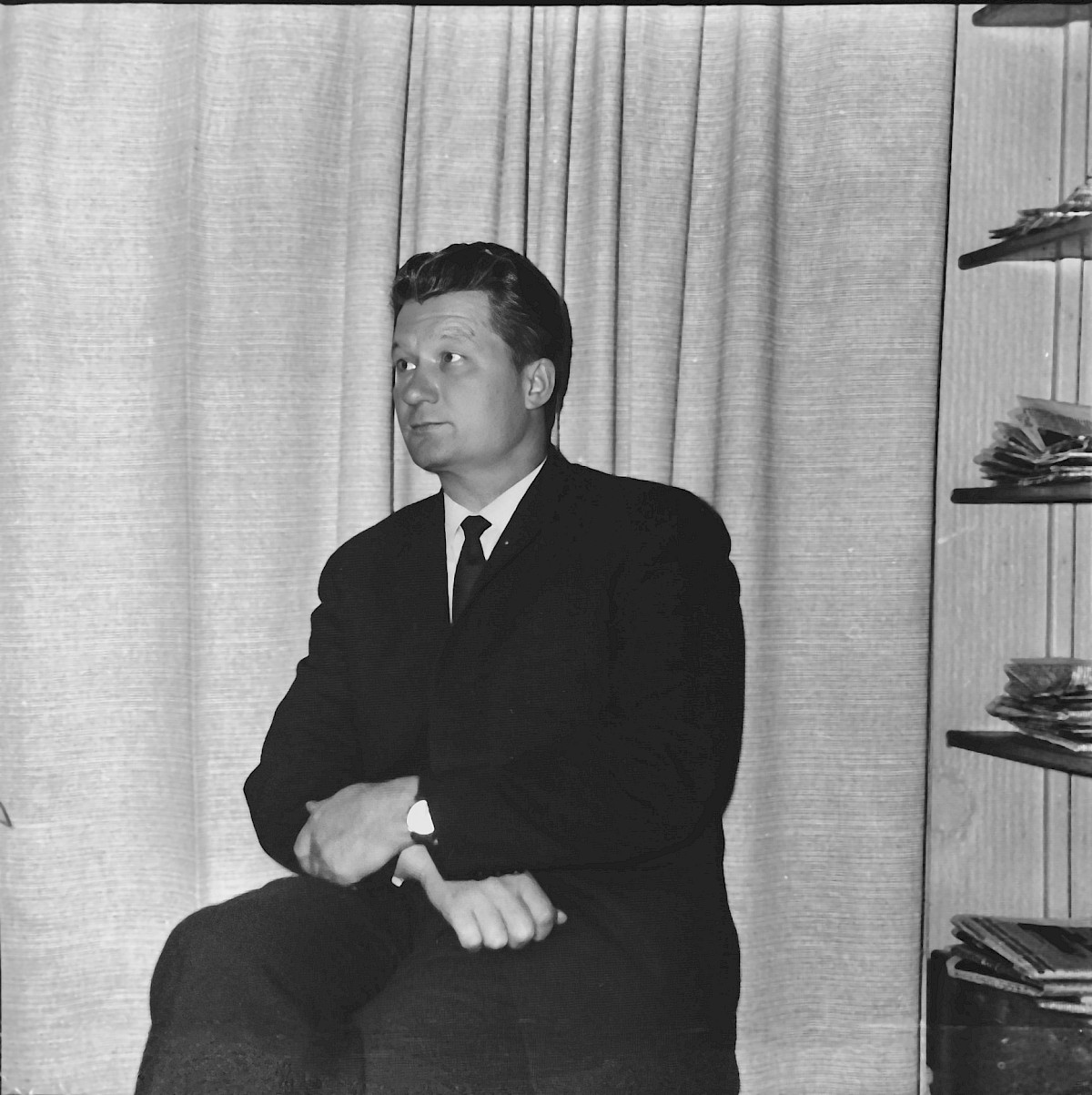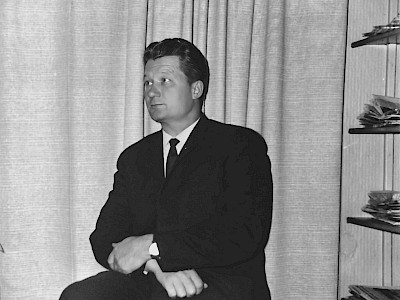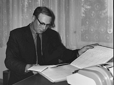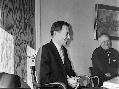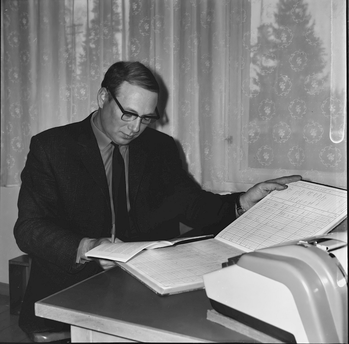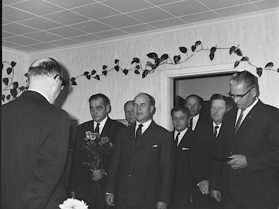 Kuva-arkisto 9.1.2024 00:02 Rantasalmen Lehti 3-1966 Toimitus 22.10.1966 Kolkontaipaleen Osuuskaupassa isännöivät Turuset joita toimitusjohtaja Toivo Pulkkinen (oik) on myymäläkierroksellaan pistäytynyt tapaamassa.
