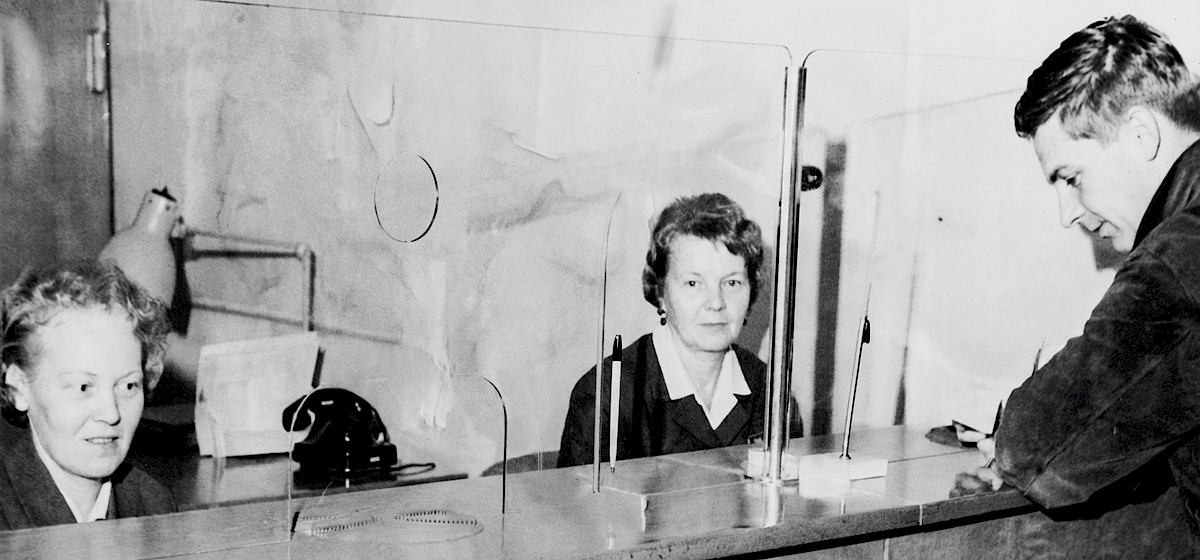 Kuva-arkisto 10.1.2024 00:07 Rantasalmen Lehti 8-1966 Toimitus 3.12.1966. Kuvattu valokuvista. Sisäkuva Kolkontaipaleen posti- ja lennätintoimistosta. Vasemmalla postivirk. rva Elin Poutanen, keskellä postinhoitaja, neiti Pirkko Eskelinen ja oikealla kuvaushetkellä postitoimistossa ollut asiakas Vesa Miikkulainen.