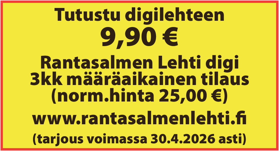 Artikkeli on luettavissa Rantasalmen Lehden tilaajille. Kaikkiin tilauksiin sisältyy kirjautumistunnukset.